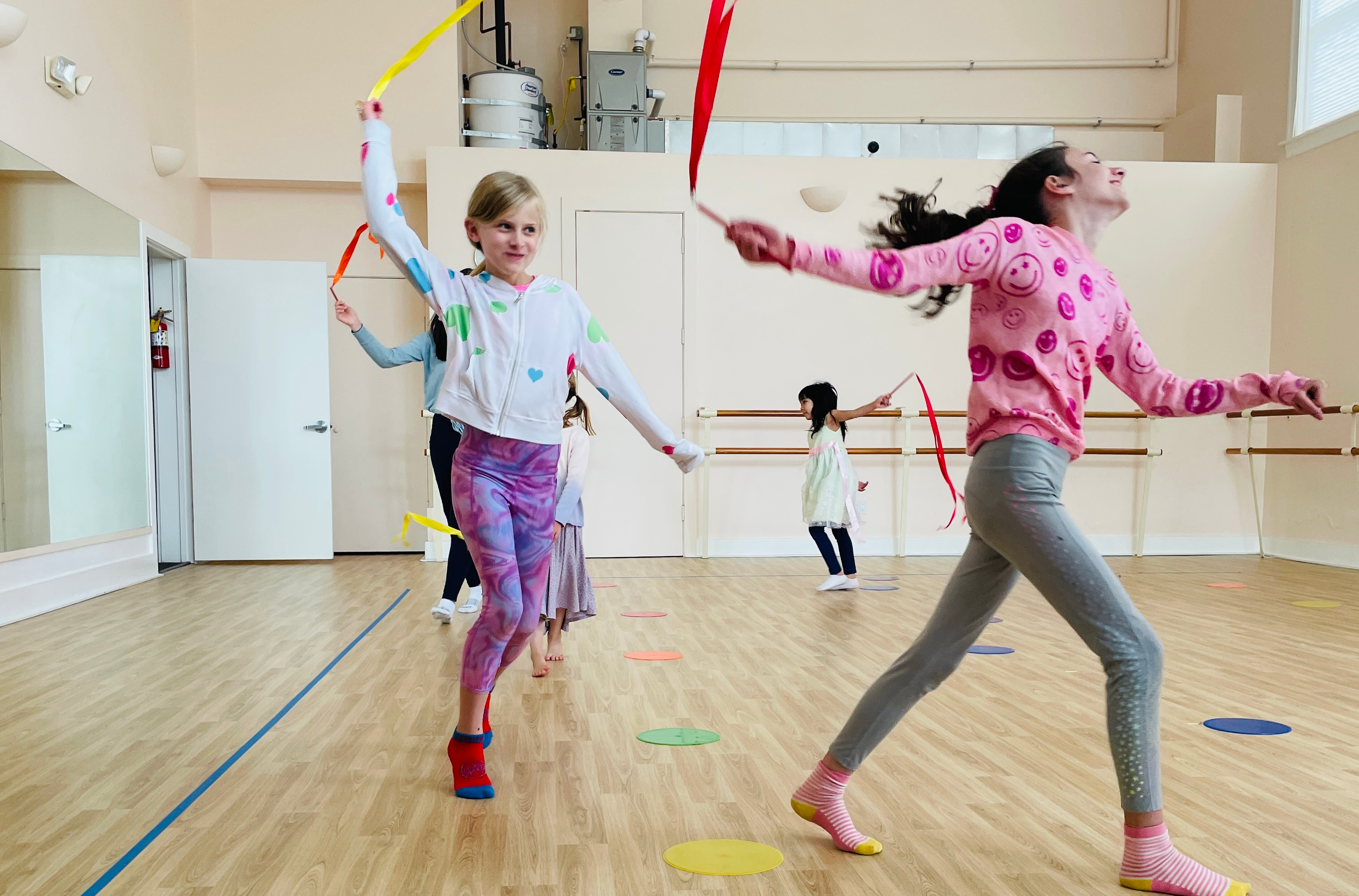 Located at CANVAS Dance Arts Studio at 5499 California Street, camp hours are 9:00 am – 3:00 pm. Each day begins with dance class with choreography and stretching. We enjoy a snack break before returning to more dancing fun. Campers walk to a neighborhood playground to enjoy an outdoor lunch and free play, then we return to the dance studio for art time. The camp day ends with dancing review and games.